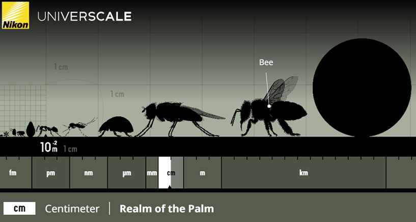 해당 데이터 베이스는 작은 크기에서부터 매머드에 이르기까지 단일 스케일로 배열된 물체의 상대적 크기를 보여줍니다.