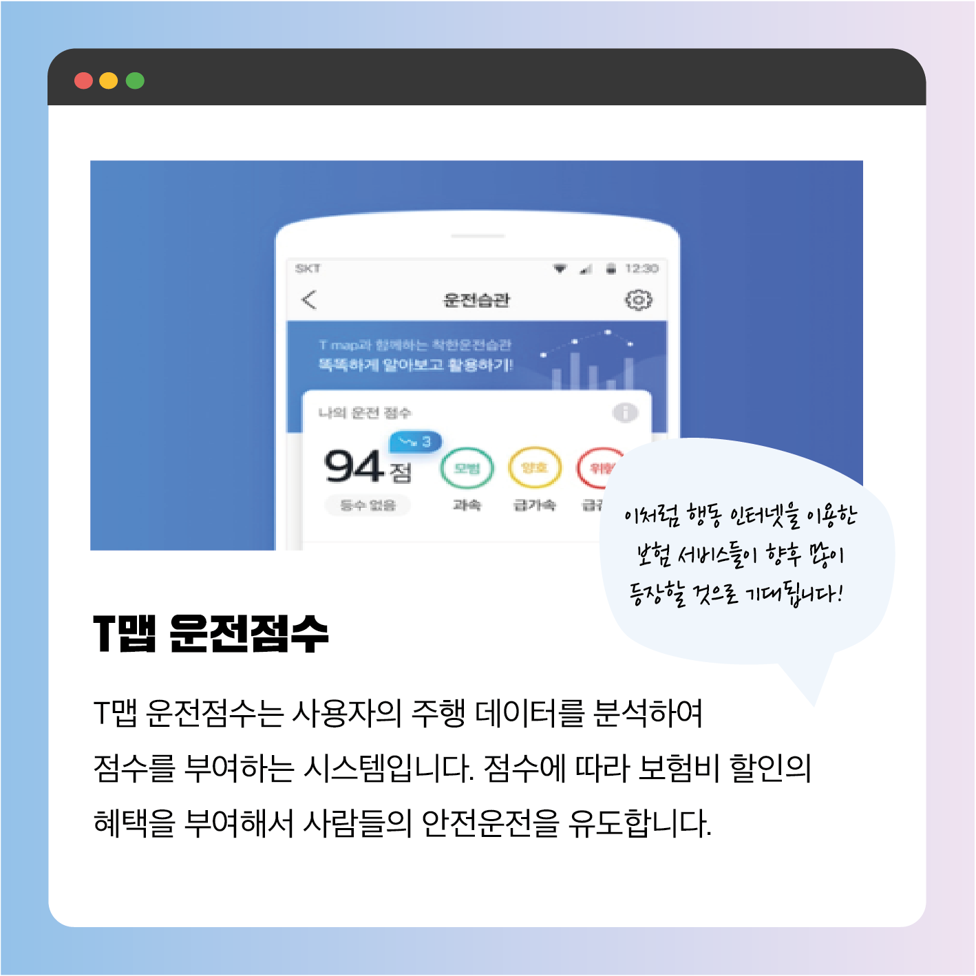 점수에 따라 보험비 할인의 혜택을 부여해서 사람들의 안전운전을 유도합니다.