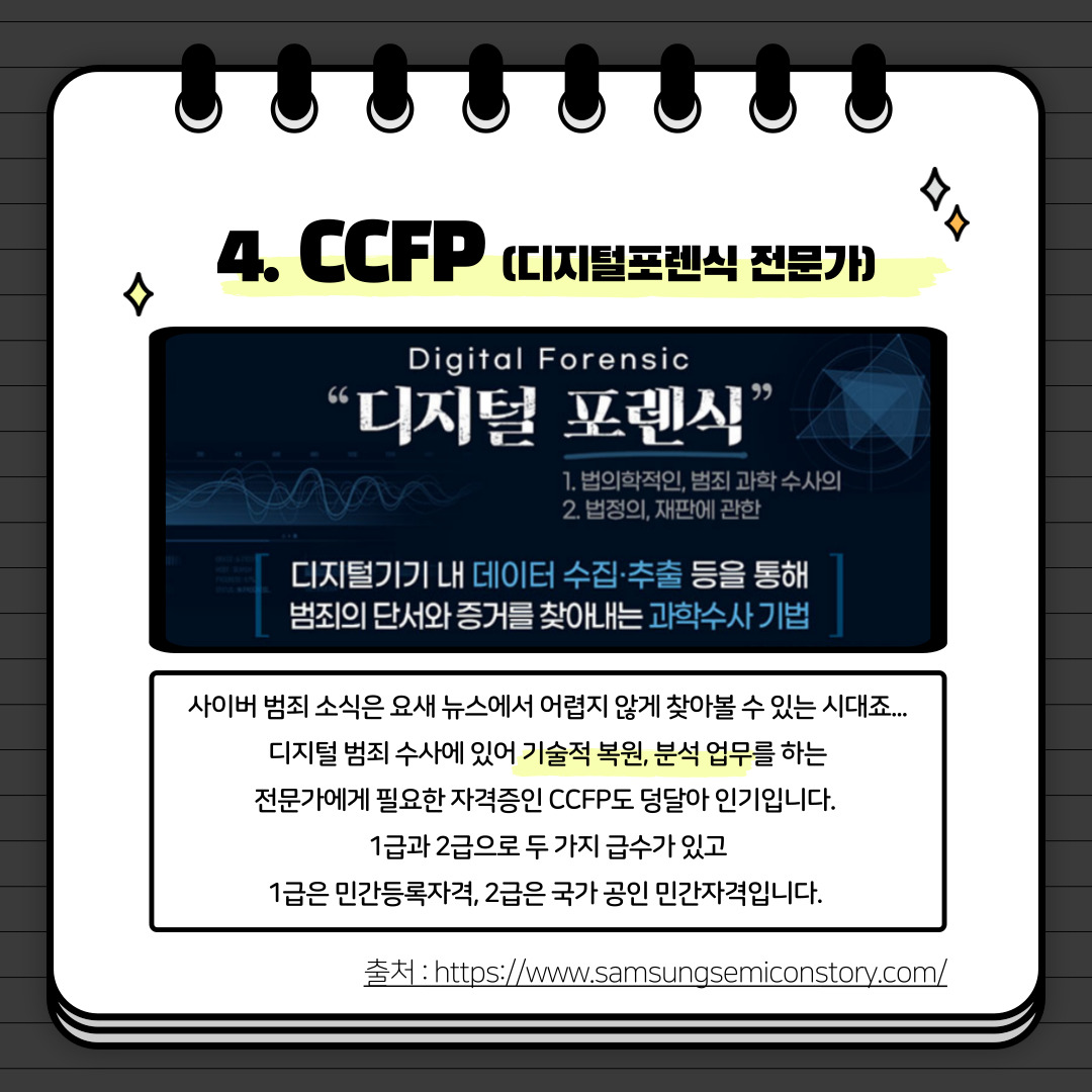 사이버 범죄 소식은 요즘 뉴스에서도 어렵지 않게 찾아볼 수 있습니다. CCFP (Certified Cyber Forensics Professional) 포렌식 전문가 자격증인데요,
