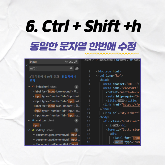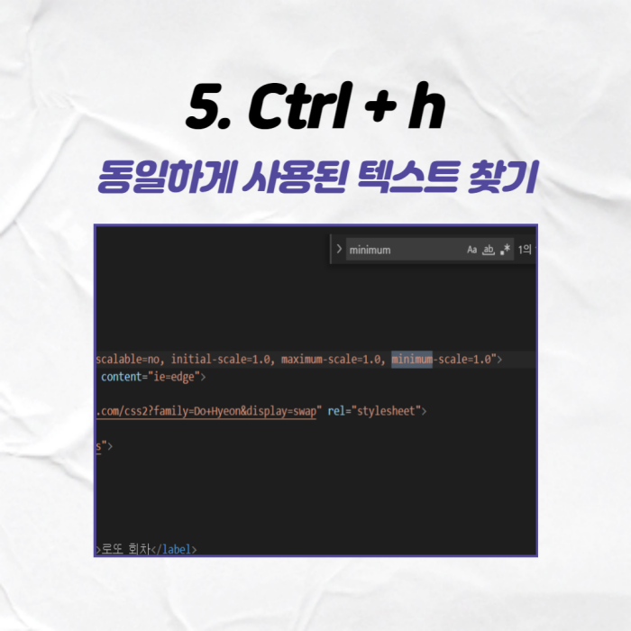 Ctrl + h는 한 파일 내에 동일한 문자열