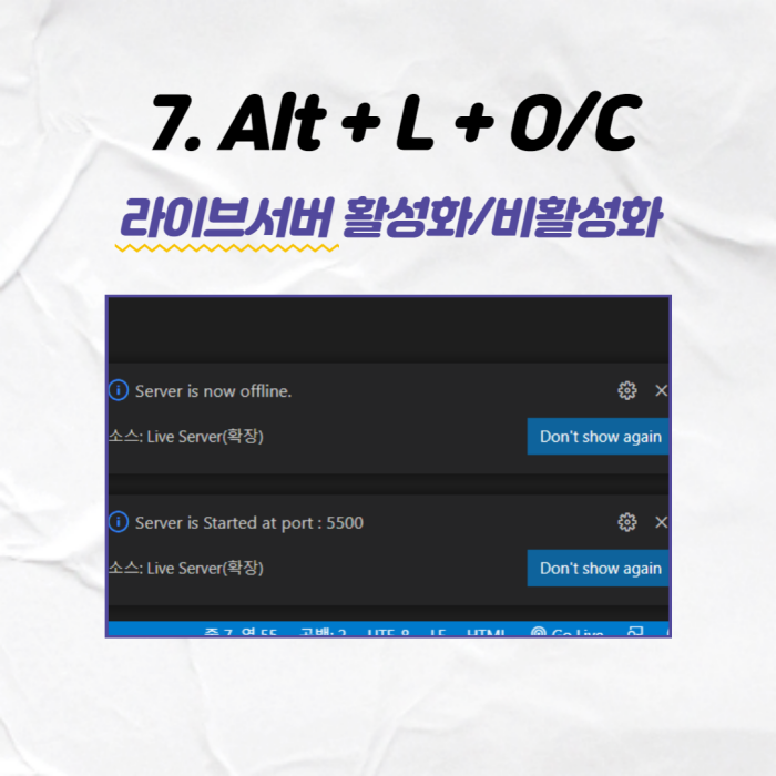 Alt + Live server + Close 이렇게 외우면