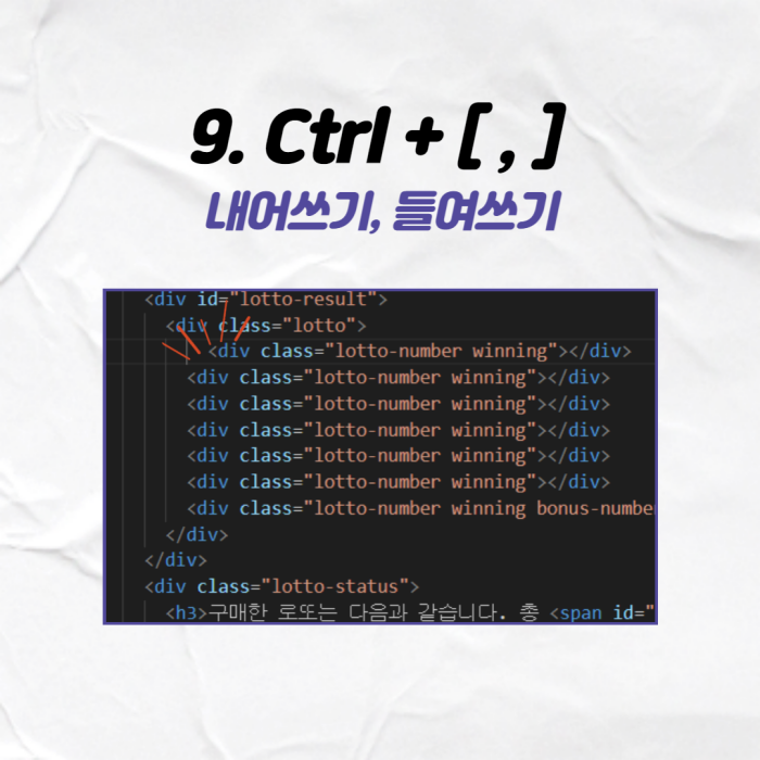 Ctrl + [ , ]로 사용하는 단축키로 내어 쓰기와