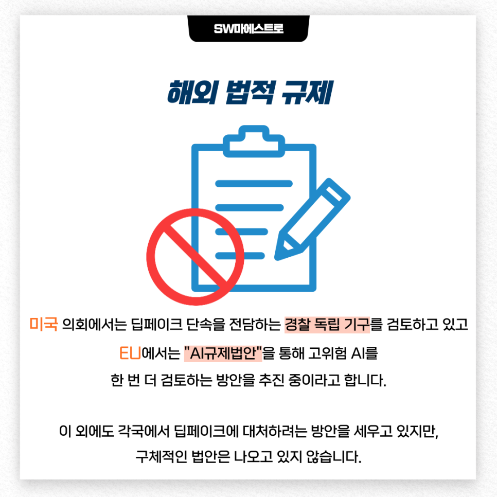 이를 대응하기 위한 법안은 기술 발전 속도에 비해 현저히 느릴 수 밖에 없는데요.