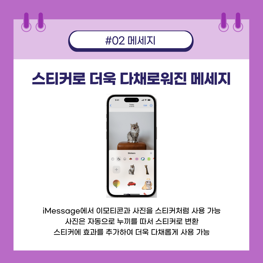 두 번째로 소개해 드릴 기능은 메세지 어플에 추가된 '스티커' 기능입니다.