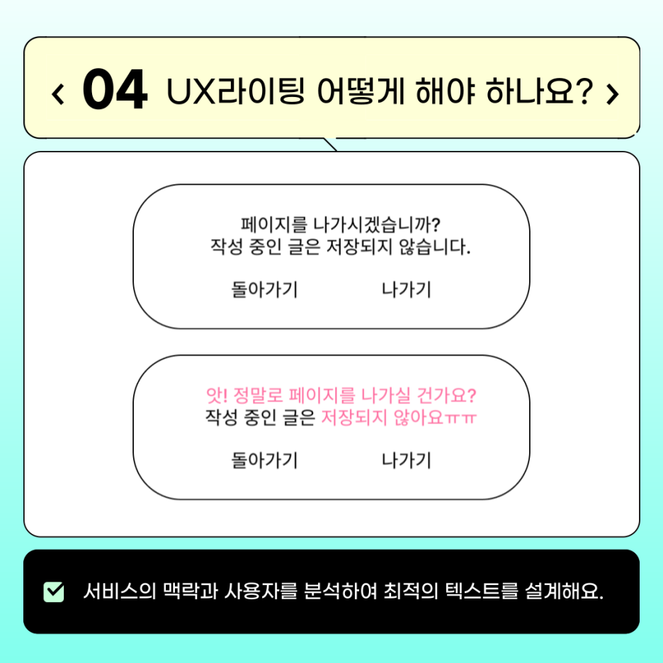 이렇게 UX 라이팅에 대해서 알아보았습니다.
