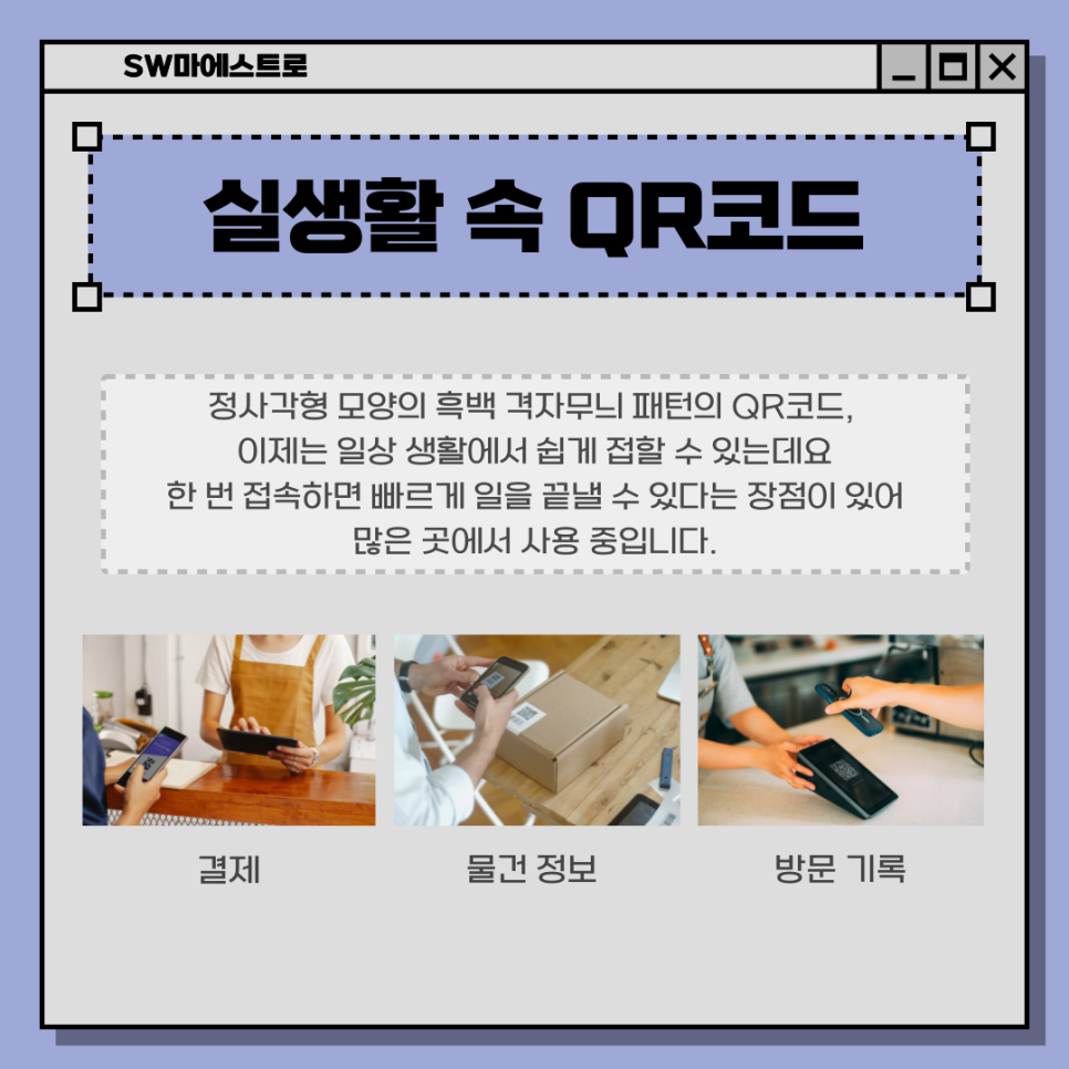이미 QR코드는 일상생활에서 많이 쓰이고 있죠,