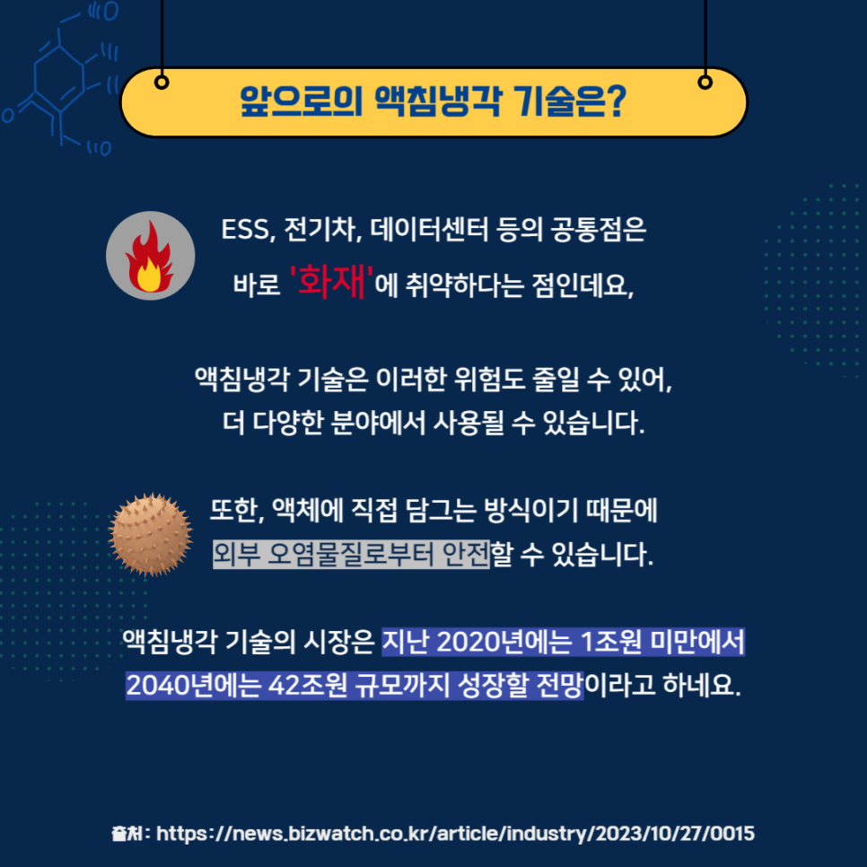 기존 냉각 기술 대비, 이러한 위험 가능성도 줄일 수 있다는 것도 하나의 장점입니다.