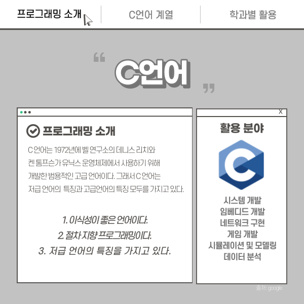 첫 번재 '컴퓨터공학과(소프트웨어)'에서는 C언어를 핵심적으로 사용하며,