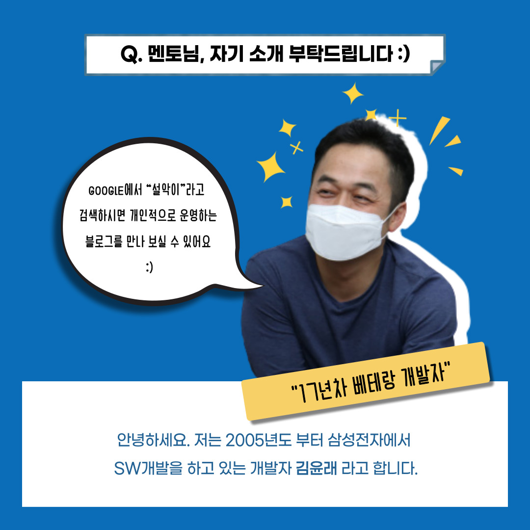 첨언하면 개인적으로 더 많은 멘티 여러분들과 만나고 소통하고 싶어서 지원했어요.