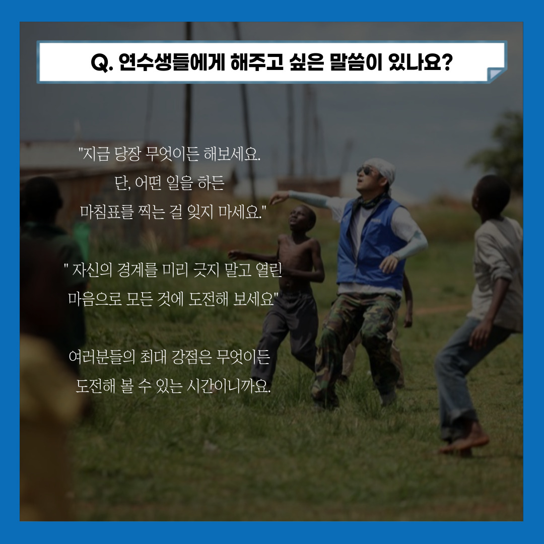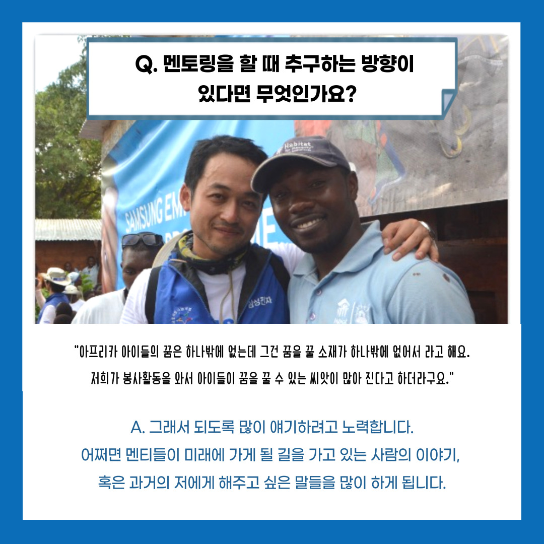 결국 저는 지금도 되도록 많은 경험을 해보려고 노력하고 그 경험들을 멘티들에게 공유하려 합니다.