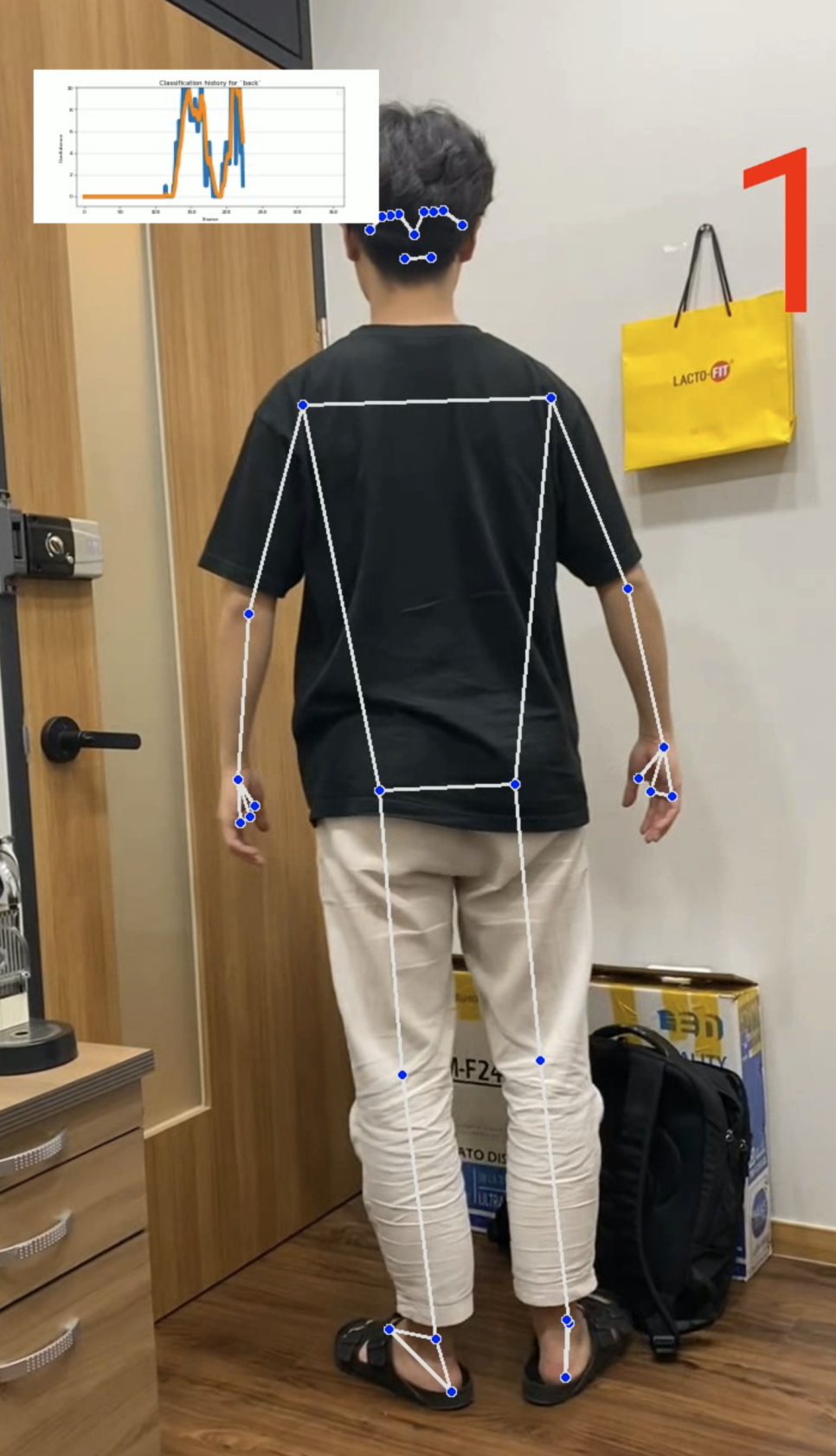 운동 횟수를 체크해주고, 동작에서 잘못된 부분을 피드백해주는 것도 다 완성이 된 상태입니다.