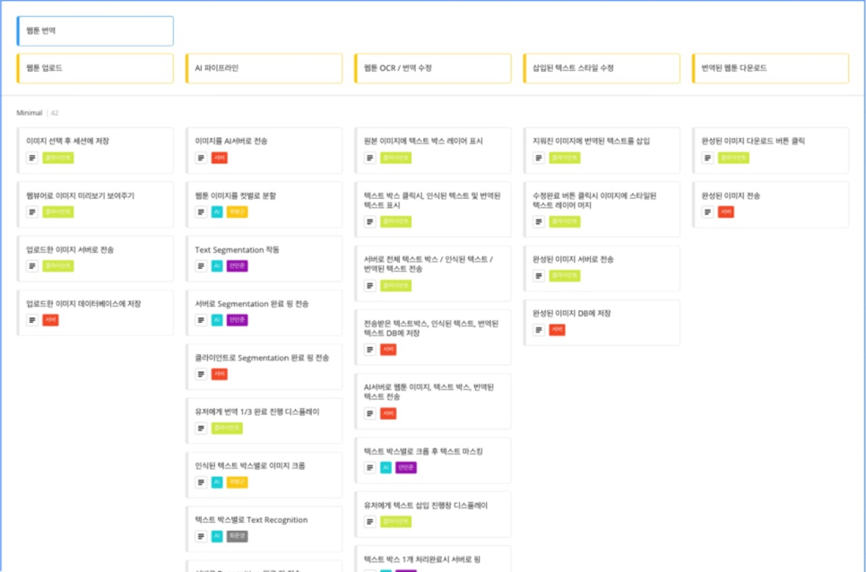 프로젝트 소개 : 한국 웹툰을 번역해서 해외로 수출할 수 있게 해주는 도구와 이를 수행 하는 AI를 고도화 하는 작업을 하고 있습니다.