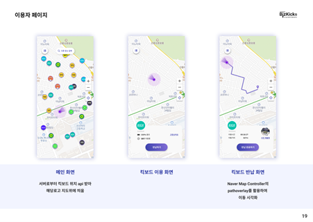 하나는 일반 공유 킥보드 애플리케이션처럼 사내 직원들이 킥보드를 대여할 수 있는 플랫폼,