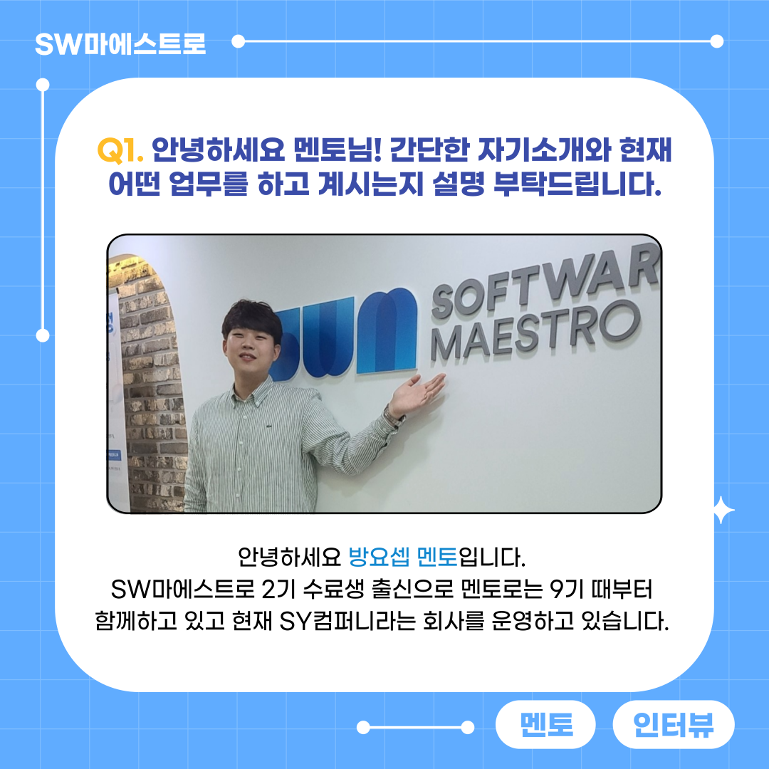 안녕하세요 방요셉 멘토입니다. SW 마에스트로 2기 수료생 출신이고