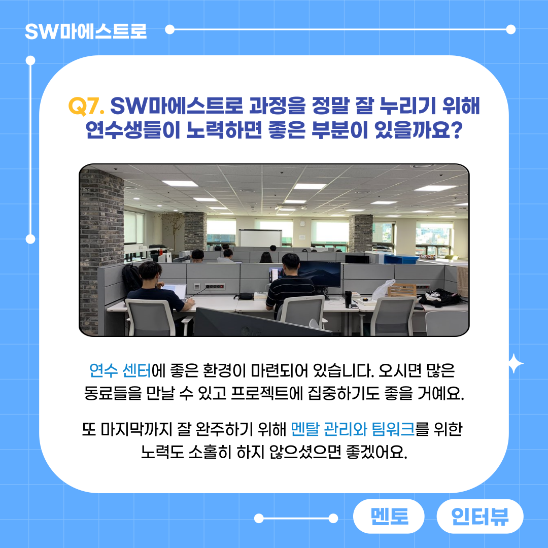 최대한 많은 멘토님과 연수생분들을 만나보세요.