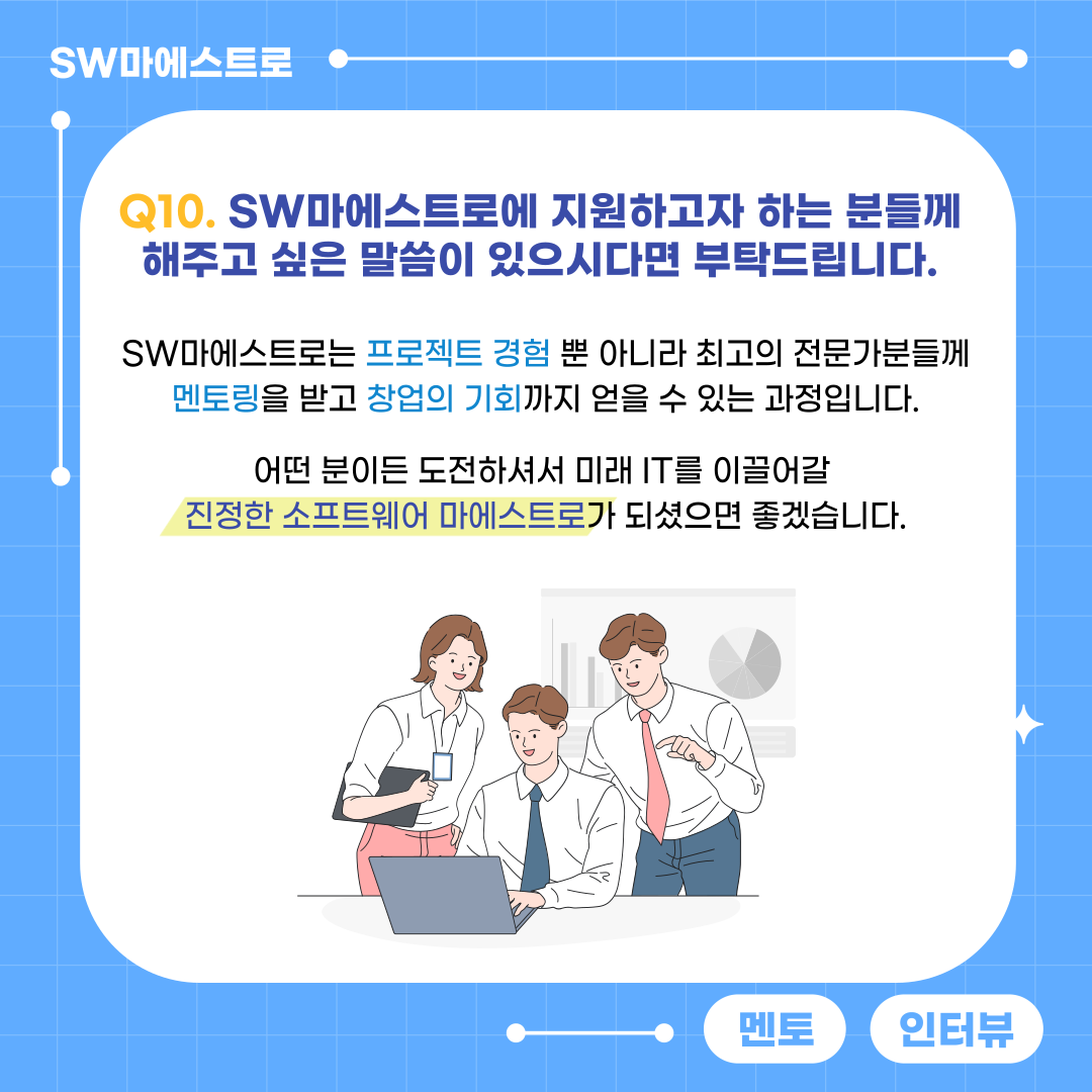 SW마에스트로를 통해 다양한 방면으로 성장할 수 있고 이 경험이 여러분 인생의