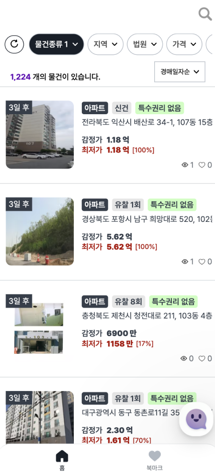기존에 낙후된 법원 홈페이지 대신에 카드 뷰 형식으로 물건의
