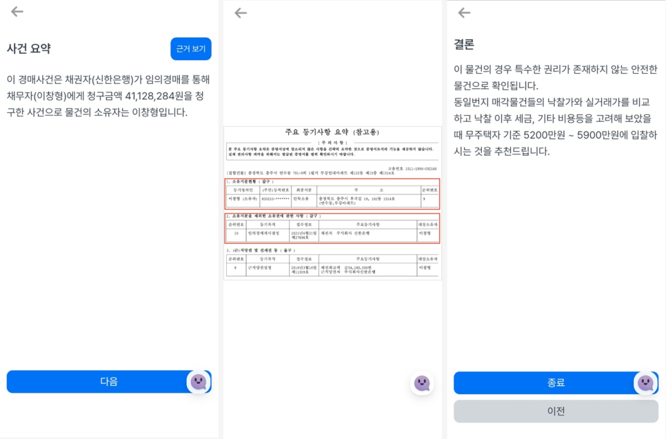부동산 경매 서비스를 처음 기획했을 때 권리 분석 같은 자세한 서비스를 제공하고 싶어