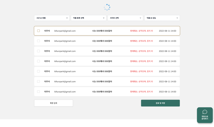 자동 탐지 기능을 이용해 악플을 찾고