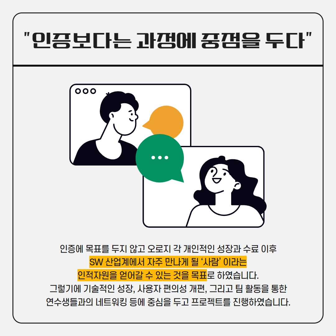인증에 목표를 두지 않고 오로지 각 개인적인 성장과 수료 이후