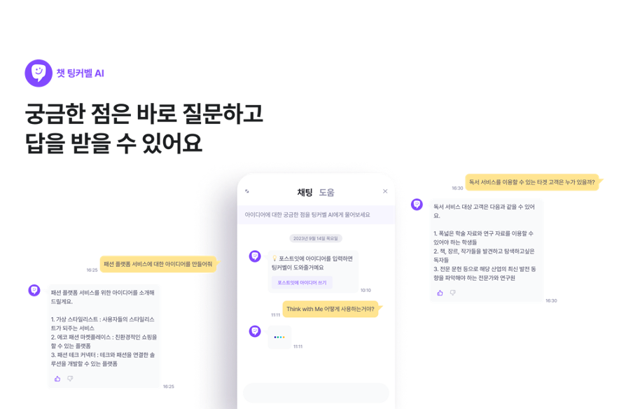 재헌 : 생성AI 어시스턴트(팅커벨)를 활용하여 아이디에이션에 도움이 되는 콘텐츠를 제공하는 것이 주요 기능입니다.