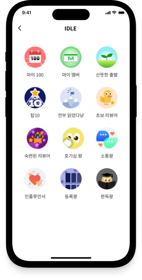 그리고 , 도서등록수, 리뷰작성수, 팔로워수, 완독도서수 등 다양한 지표를 기준으로 뱃지 달성 조건을 설정해두고,
