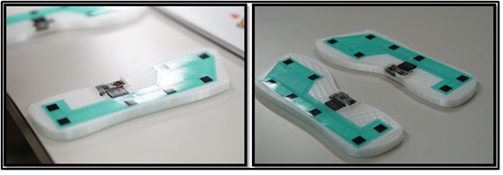 그리고 기존 손바닥 크기의 테스트 보드를 소형화하기 위하여 직접 회로설계와 PCB 아트워크를 진행하여 3.5cm의 사이즈로 모듈을 개발하였다고 합니다. 이런 노력을 통해 기존의 인솔 두께가 8mm 정도인데 진솔 제품은 모듈을 포함해서 9mm의 두께로 제작하여 이질감을 최소화하였다고 합니다.
