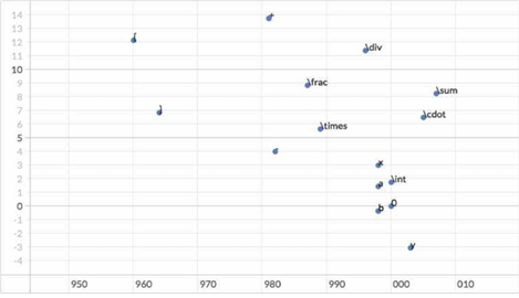 다음의 사진을 보시면 실제로 수학문제를 이루는 키워드들이 종류에 따라 클러스터링 됨을 확인할 수 있습니다.