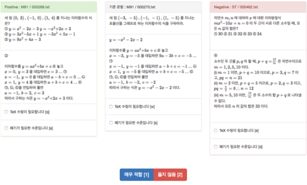 이 부분에 대해서 DeepMath 팀은 유사 유형 검증을 위한 Triplet Dataset 구축을 통해 해결하여 Math2Vec의 성능을 객관적으로 측정할 수 있는 기준을 설정하여 성능 향상을 추구하고,