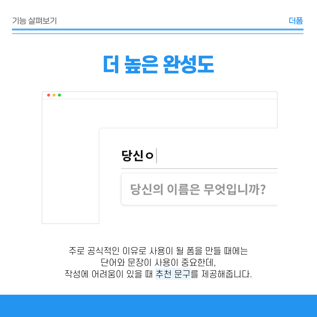 작성에 어려움이 있을 때 추천 문구를 제공해 준답니다!