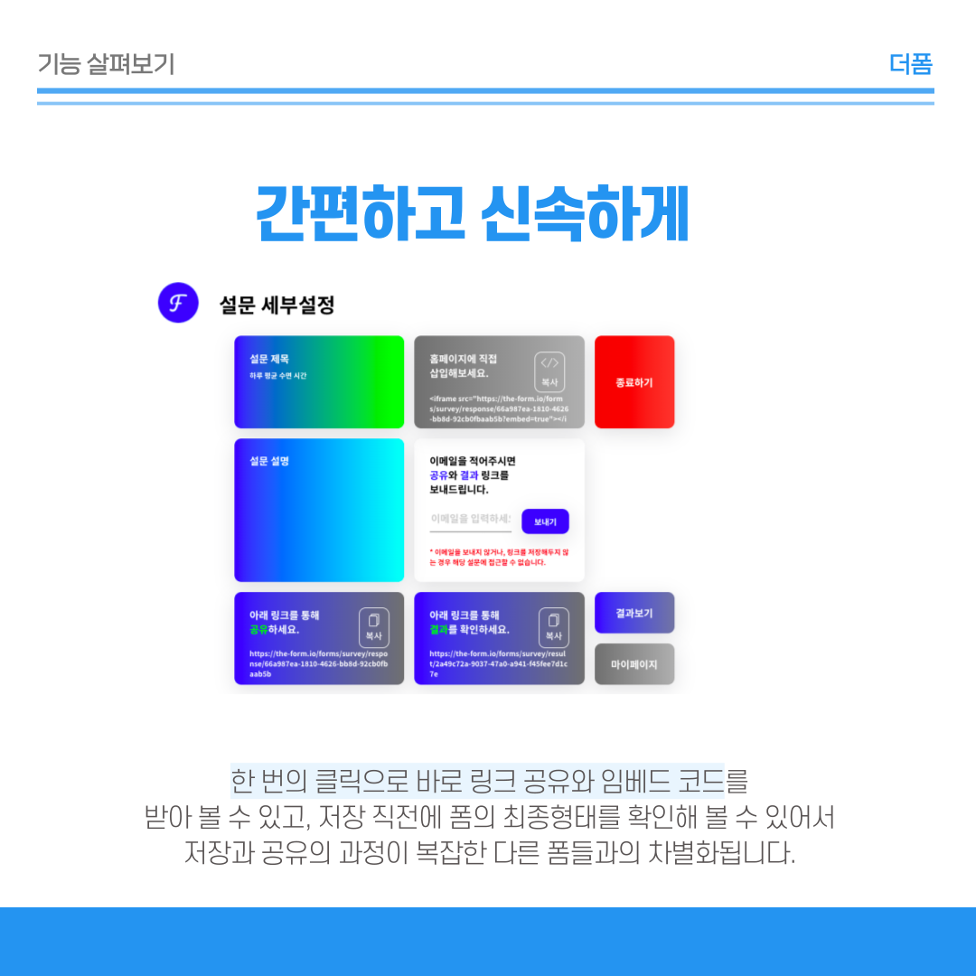 저장과 공유의 과정이 복잡한 다른 폼들과 차별화됩니다!