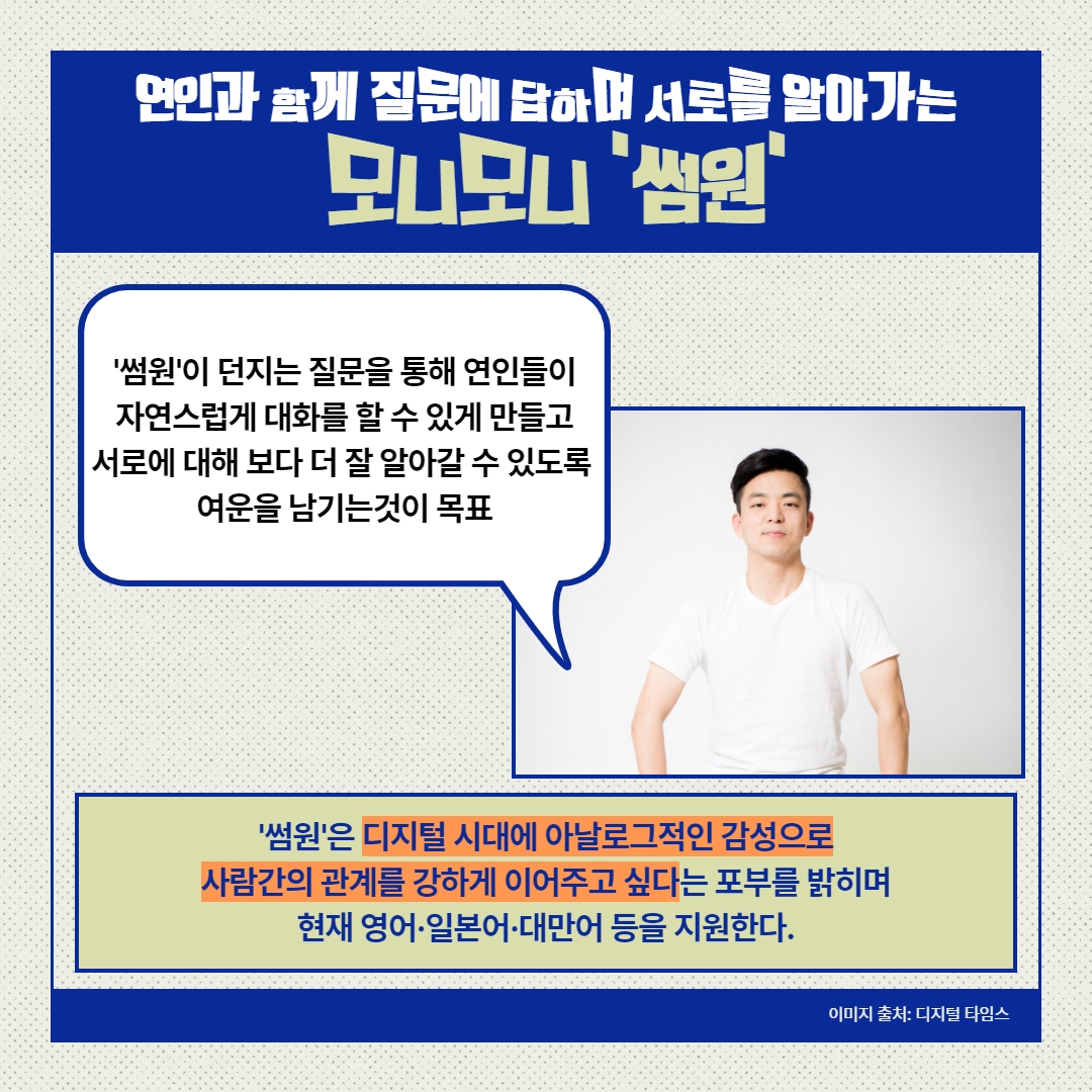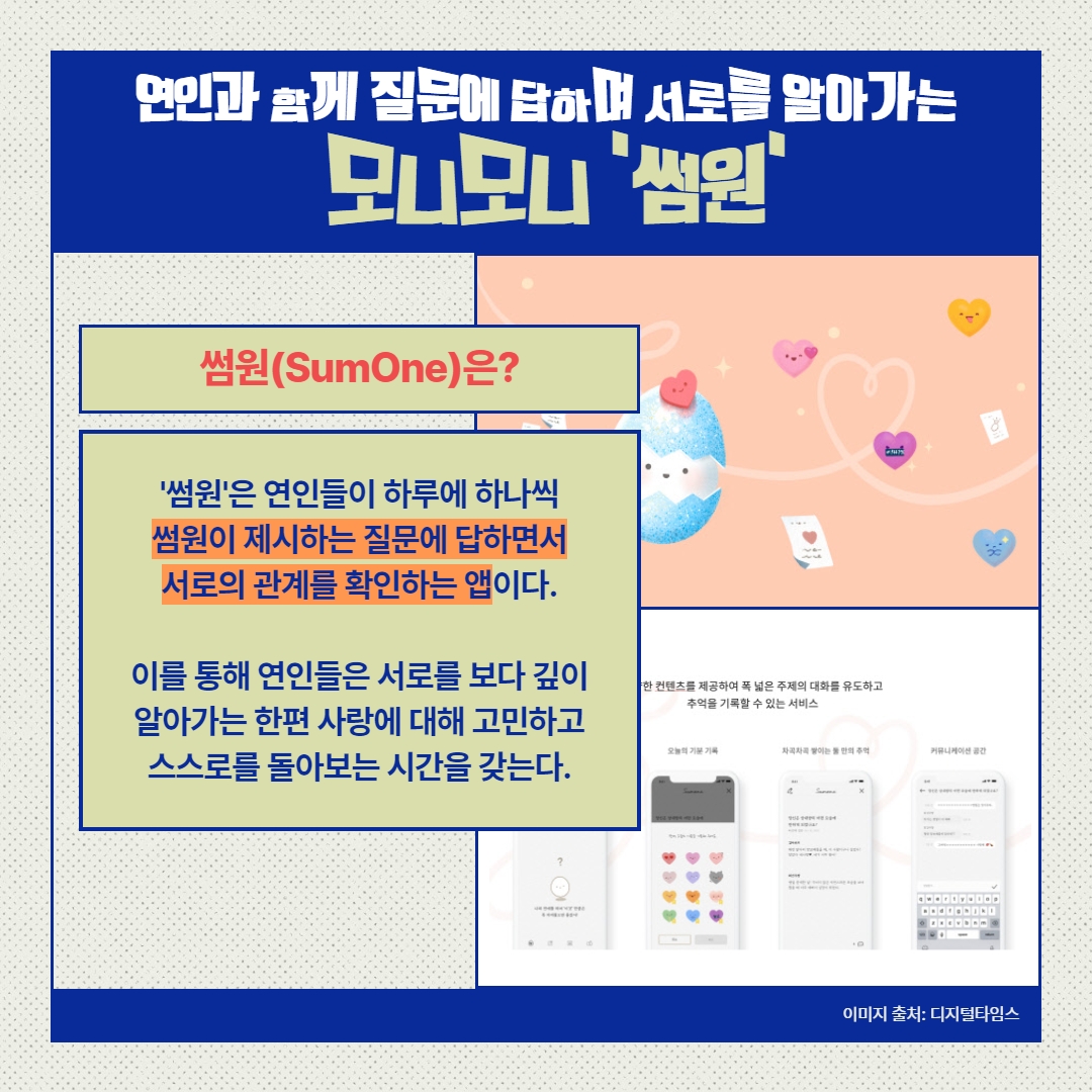 '썸원'은 연인들이 하루에 하나씩 썸원이 제시하는 질문에 답하면서
