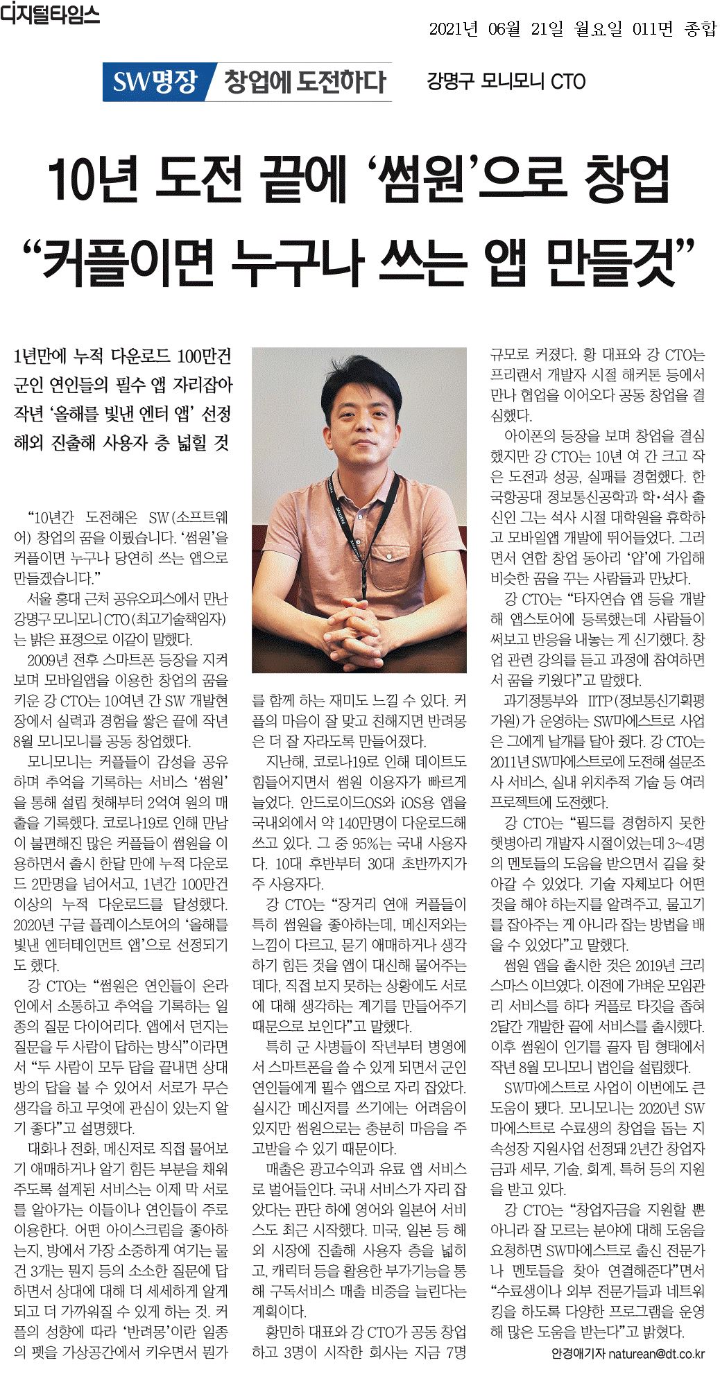 10년 도전 끝에 `썸원`으로 창업… "커플이면 누구나 쓰는 앱 만들것"
