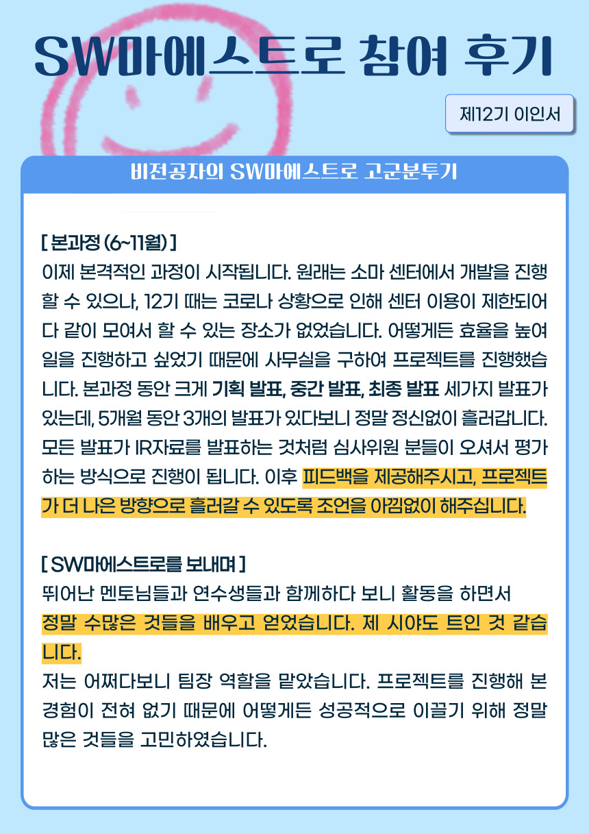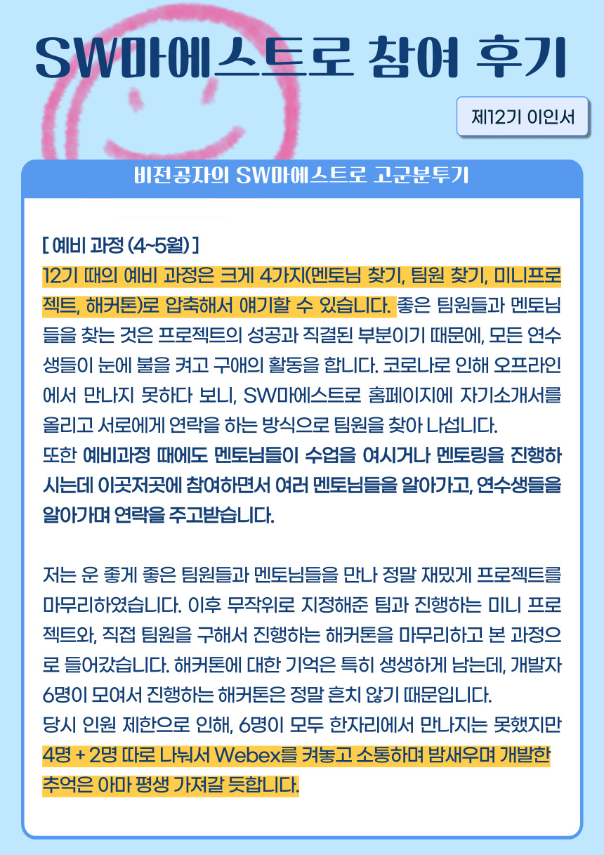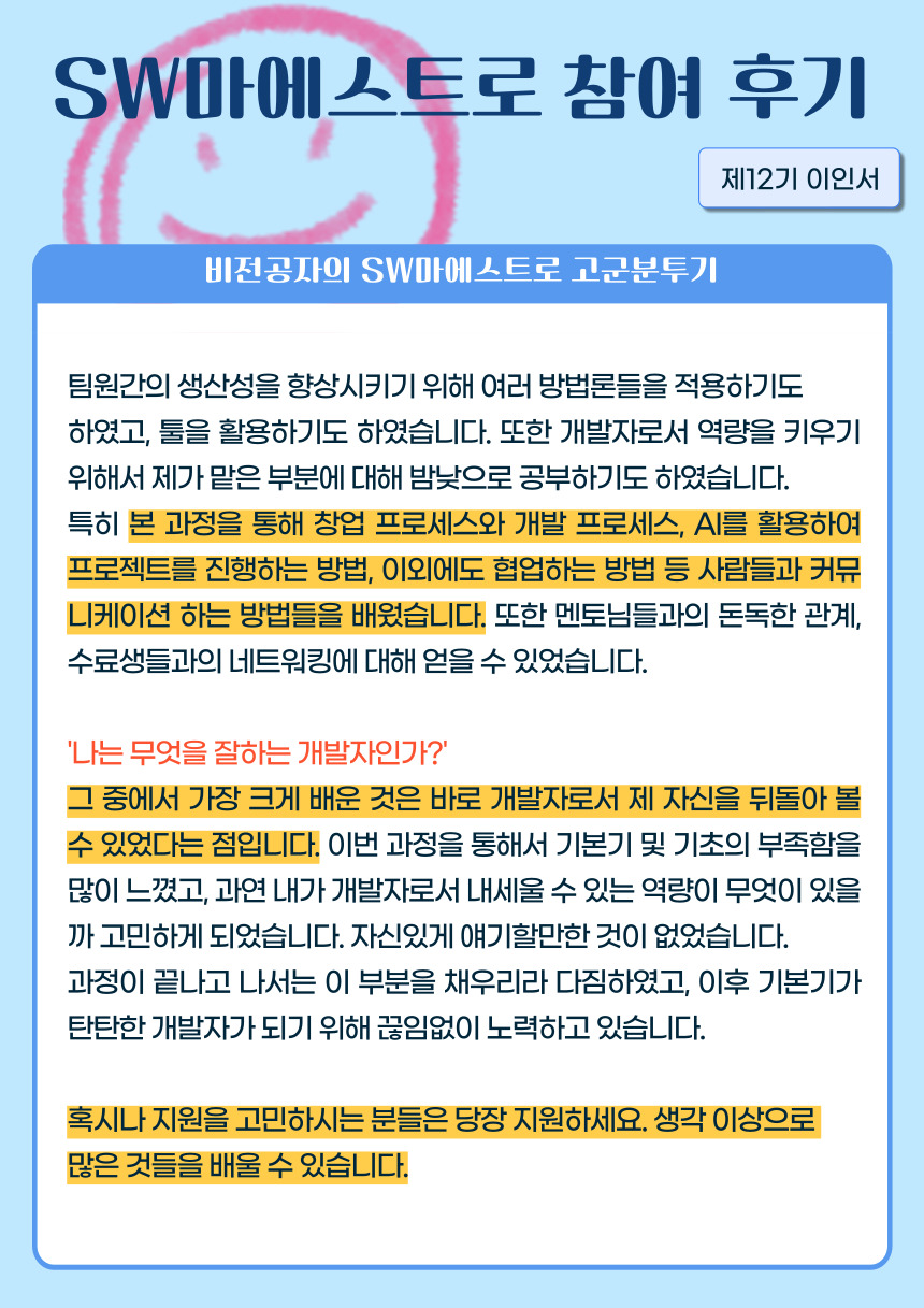 [제12기 이인서] 비전공자의 SW마에스트로 고군분투기