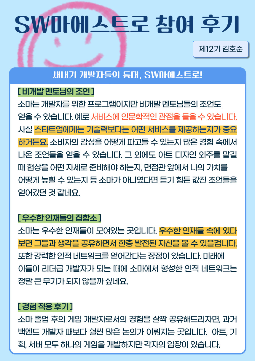 [제12기 김호준] 새내기 개발자들의 등대, SW마에스트로!